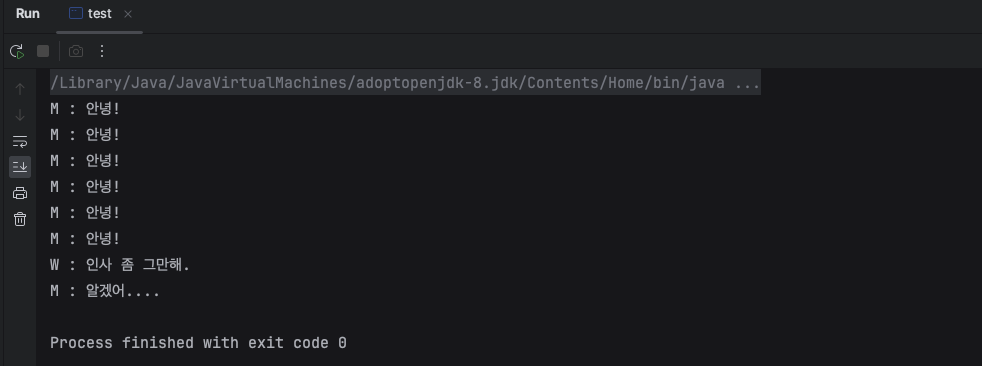 하지만 for문 내부의 if문에서 i가 5가 되는 순간, W의 말을 출력하고 break가 사용된 것을 확인할 수 있습니다.