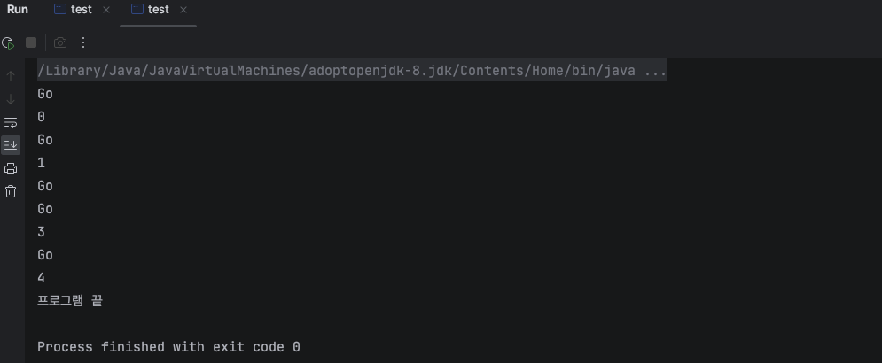 2가 출력되어야 하는 차례에 2가 출력되지 않을 것이다. 결과를 보자.