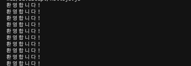 "환영합니다!" 라는 내용을 반복하여 10번 출력하는 문장을 JavaScript로 구현하려면 어떻게 해야할까 ?