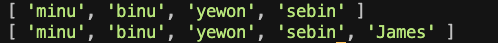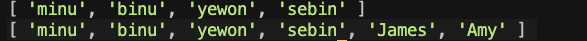 let student = ['MINU', 'BINU', 'YEWON', 'SEBIN'];