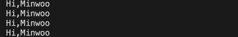 마지막에 bndfnc를 호출해보면 정상적으로 Hi, Minwoo 가 출력되는 것을 확인할 수 있다.
